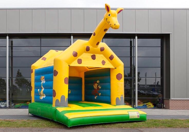 Deze grote giraffe zie je al in de verte staan. Het springkussen giraffe is een helder en mooi vormgegeven springkussen. Op de buiten en binnen wanden zijn leuke jungle afbeeldingen geplaatst. Door de gele kleur en de lange nek van de giraffe is dit springkussen een echte eye-catcher.